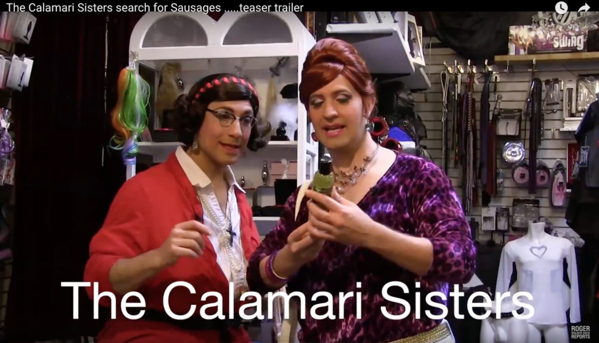 queerguru went shopping this week and bumped into Delphine and Carmela ….known to the world as the (in) famous Calamari Sisters. They had stumbled into The Toys of Eros looking for sausages to use in their brand new SAUSAGEFEST show playing at The Sage Inn & Lounge all this summer. They were somehow under the impression that this was a kitchen utensil store and took great delight in showing me how they planned to use all the ‘unusual’ toys.