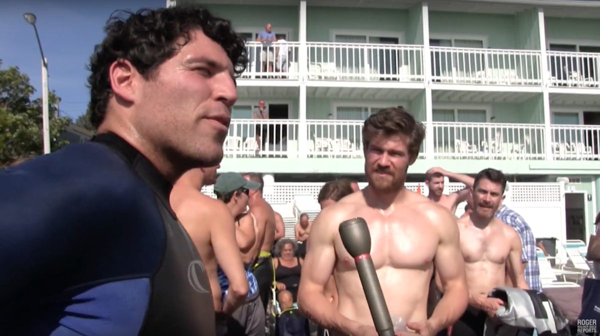 queerguru talked to Cordeiro as he was donning his wetsuit just about to start the swim ….. and waited there to make sure he got back safely !