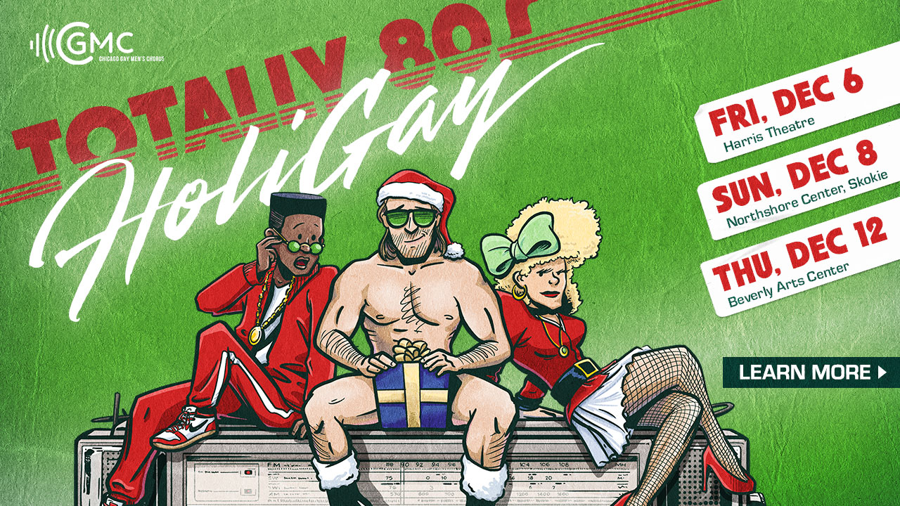 The VERY best way to start celebrating the Holidays in the US MidWest is in Chicago . Go listen to the 200 voices of the Chicago Gay Mens Chorus for a Totally ’80s HoliGAY neon-filled holiday celebration featuring big hair, boombox and singing iconic ’80s holiday hits.