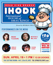| Doors open at 12:30 pm with performances beginning at 1 pm at The Cutting Room (44 E. 32nd Street, New York, NY 10016). IHOD tickets are $20 for general admission or $35 for VIP tickets, which include reserved front tables and a meet-and-greet with the kings. Please note, there is a $25 food/drink minimum, with a full brunch menu available. There is also a boozy brunch option for bottomless Mimosas, Prosecco, Bloody Marys, and Margaritas for $29; you must order an entrée to get the bottomless option. |