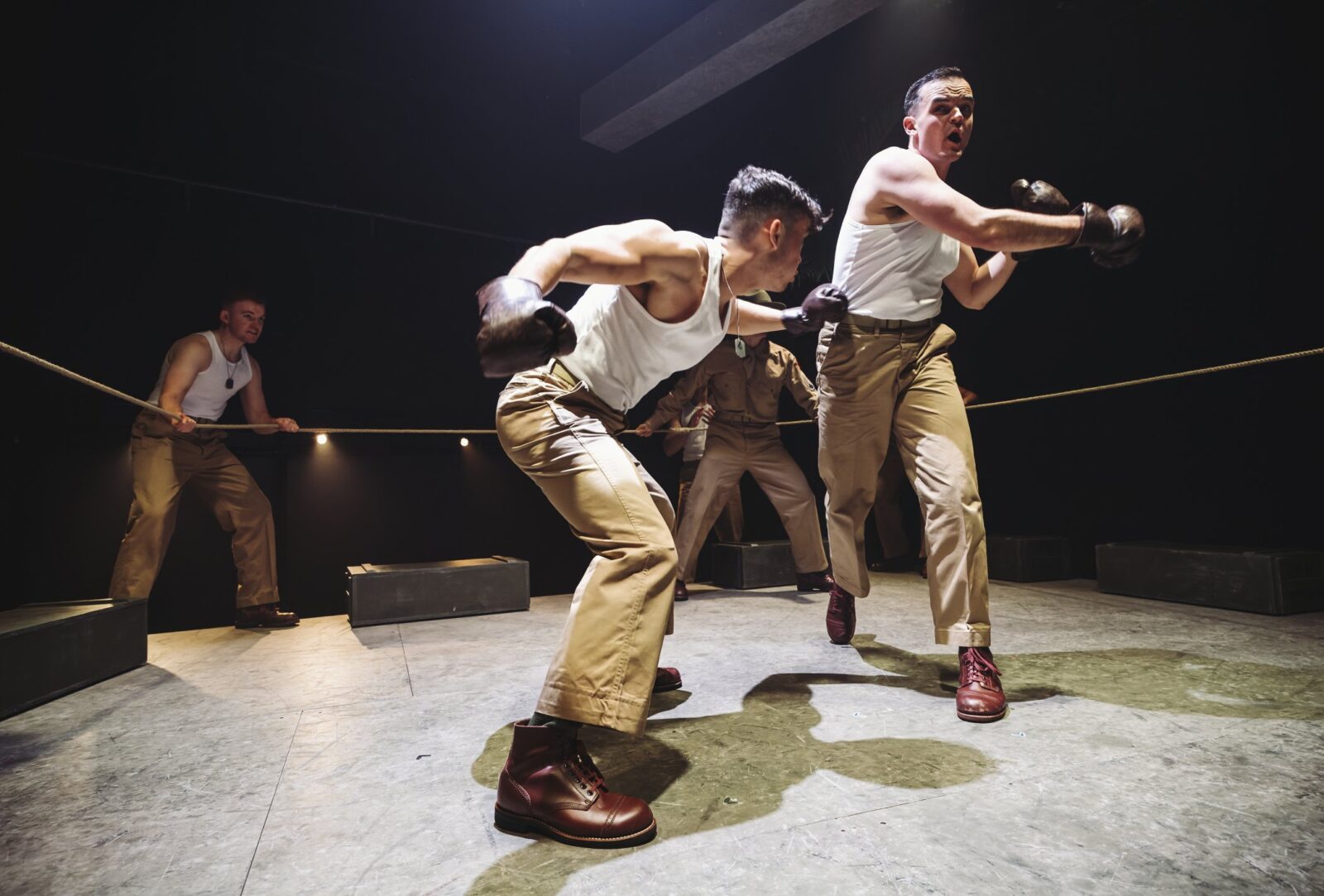 .During its preview period some people walked out of the performance, having been unprepared for the nudity and swearing in the production. Darius Campbell who played First Sergeant Milt Warden, said that the “James Jones novel really portrayed homosexuality and prostitution in the way that it existed in those days and we’ve dived in head first. Maybe some of the nudity, swearing and explicitness has been too much for them, but a younger audience and an audience who have loved the film – and wanted to see more – have been giving us standing ovations and for that we are all grateful.”