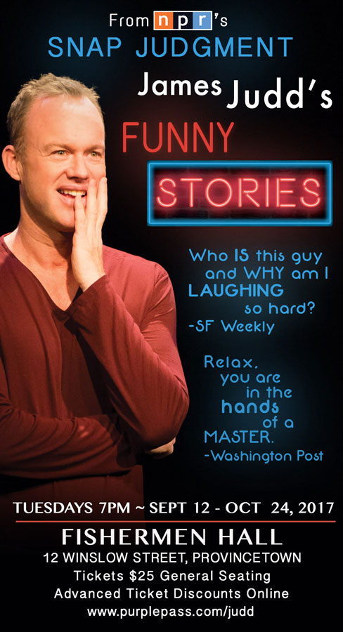 Humorist and hysterically funny storyteller James Judd the star of NPR‘s #SnapJudgement is in #Ptown for the next few Tuesdays performing James Judd’s Funny Stories at #FishermansHall : he stopped by to talk to us in the queerguru garden about his unmissable show.