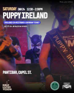 The whole event is run by Leathermen of Ireland, a voluntary group who promote the leather and fetish scene in Ireland and who have long experience in the fetish scene both at home & abroad. It started off as a Zoom meeting group during 2020, and the group now hosts leather socials during the year as well as charity initiatives has attracted leathermen from all corners of the globe to our humble isle.