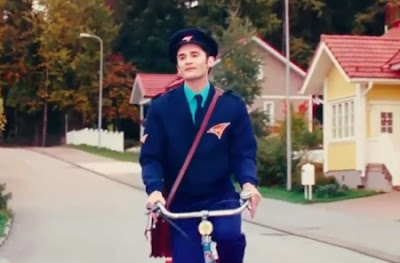 This one starts in a legoland type village somewhere in Finland where very effeminate sophisticated Parisian Reuben is now the local postman. Evidently he never completed his Master’s Degree in ‘Comparative Sauna Cultures’ and for some inexplicable reason he is now married to blond Finnish schoolteacher Teemu even though there is zilch chemistry between them. On his rounds one morning Reuben ends up with a parcel bursting full of euros that he takes home causing a spat which ends with him being thrown out of the house.