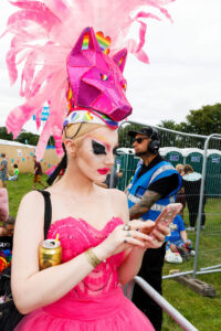 Martin Parr told Queerguru: I have photographed over 4 Prides and it is always one of the best days for shooting in the Bristol calendar. I like shooting when people are assembling for the march, and also gives me a chance to shoot some great homemade placards and to isolate these, to give them more presence. It is fantastic how Pride marches are now enjoyed by so many people. This would not have been the case when these marches started as the acceptance of the gay/ trans sections of society is now so much greater.