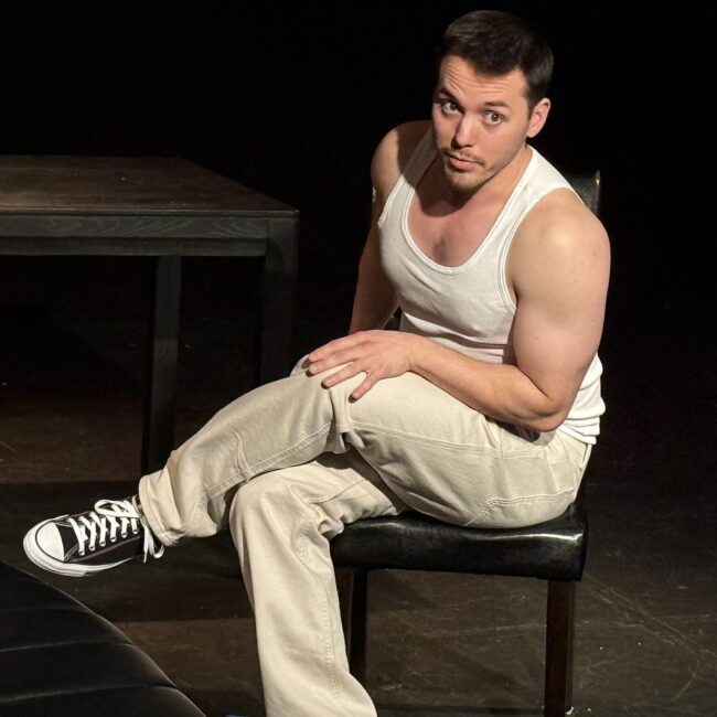 The World Premiere opened last week at the Sgouros Theatre (upstairs at The Players Theatre) in the West Village. The production runs until April 19. The Tickets are normlly $55 (fees included) but use the code “Naughty” and Queerguru readers can get them for $30 (+3 service charge)
