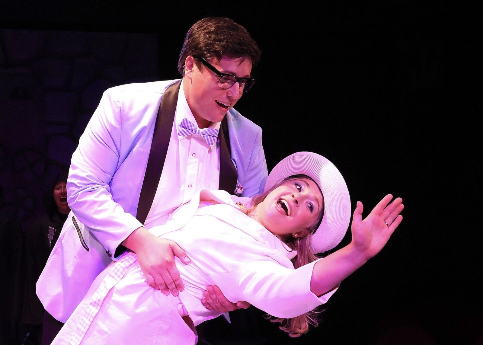 Rocky Horror is such a great piece of ensemble theater and every part has been so very well cast but there are are inevitable some star stealing -performances in their midst. Like the dramatic entrance of the 6 ‘ 5″ scantilly clad Boy Radio as the mad Dr Frank’n Furter an inspired choice for someone to follow in the great Tim Curry‘s (very high platform) shoes. Zack Johnson’s beautiful powerful voice is so perfect especially for ‘Once In a While’ ballad which had us on the edge of our seats. And then in the 2nd act the scene stealer is unquestionably Alex Sesenton as Dr Scott