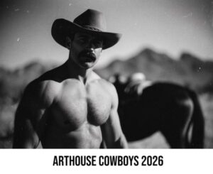 When we started to look for a new Wall Calendar for 2026 for the Queerguru Office, we thought we would make the search easy by just typing in GAY COWBOYS. Wrong move! We’re not sure who is still ‘home on the ranch” looking after the cattle (and whatever else they do) as it seems like every single cowboy, in the not-too-Wild West is now a model. And we are thinking that maybe what we discovered is just the tip of a Western iceberg and that ranch-hand are a disappearing breed. The upside, however, is that at least we finally get to take 12 of them home.