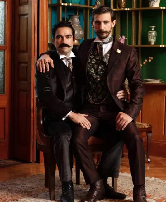 It’s 1901 in Mexico City, and a handsome high-flying young politician, Ignacio de la Torre (Alfonso Herrera from “Sense8”) has been ‘persuaded’ to marry the President’s daughter Amada (Mabel_Cadena) He is a closeted gay man who gets his kicks from being a member of a very secret private club full of aristocratic gay men who have wild, debauched parties. His clumsy attempts to impregnate his wife eventually peter out, and he moves to his own bedroom to avoid having to have sex with her.