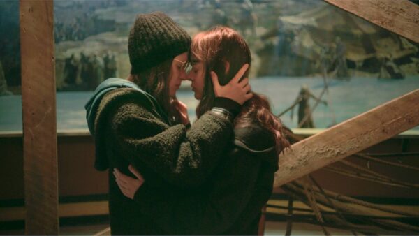 At church, desperately trying to hide inside her black zip-up hoodie, she spots a redhead her age in the front row, and her gaze is returned with a welcoming smile. Gradually it becomes apparent that the only way she can spend time with the red-haired Marike (June Laporte) is to participate in service to “the Truth” as a witness. She and Marike quickly become friends, as Marike mentors her in this, but as their mutual attraction blossoms, it’s clear that some lesbian mentoring by the more experienced Jaime will be given in return. Beginning with little touches, then kisses and more in stolen moments, they fall in love but are clearly not free to be who they are.
