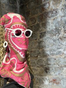 Ella Guru from the Stuckist movement provides exquisite richly detailed oil paintings involving the painted face steeped in mythology and the sawdust and tinsel of life on a stage or a colour walk on the street. Sallyann Wood creates body masks out of discarded lost gloves and socks found on the streets of London. These discarded dead cells of clothing take on new life. Alessandra Bester creates what may be forms of head wear although look closely as they conjure up another world. These are delicate creations that may look simple but it is the careful use of light to create lines of shadow that reveal interior worlds of the new born child or that of another face. Pamela is Dead creates breathtaking ethereal masks that feel like they may have once been graced by the spirit of Federico Fellini’s Satyricon.
