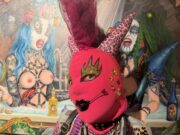A strong gathering of queer LGBT+ artists includes Amy Kingsmall, the goth twins Mastoff and Mastej, Thierry Alexandre, Alice of the dead, Pavel Gabas, Jaimie Freestone, and Charlie Jimenez. There is plenty here that is pounding with humour, horror and sexuality involving the naked body. During the opening night launch, artist Kingdom provided a wonderful camp comic musical act, pushing the boundaries of fashion. Guests at the launch wore striking hybrid fashionista masks that perfectly reflected the exhibition’s tone.