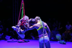Bunny is a daring interactive performance utilising the physical properties of rope and knots to explore desire, trust, consent, and connection between the artist and the audience. Daniel Kok and Luke George look to macramé, sailors’ knots, Chinese knots and rope bondage to weave together an experience of collectivity. “Bunny” is a nickname given to the person being tied in rope bondage. In this work, we ask ourselves this question: What if everyone (in the theatre) is a Bunny?