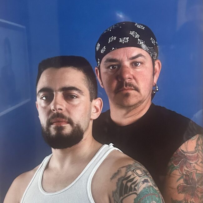 of early 1990’s Los Angeles and San Francisco, a simpler time when living an alternative, bohemian life in both cities was much easier. Maybe this is why her subjects from back then look relaxed. Opie’s show also includes images of American footballers and other men, including a striking image of a man in a baseball cap with an American Patriot insignia. In the past this man would have been assumed, without much further thought, to be just another American oddball. Now he presents as maybe a racist, fascist MAGA supporter.