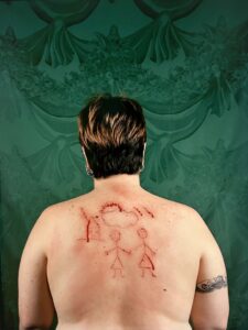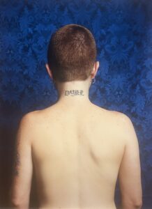 included in To Be Seen. Highlights include 1993’s Dyke which shows a friend of hers, Steakhouse, with the word Dyke carved into the back of her neck, a quite attention-grabbing piece at the time. Opie’s most famous piece is arguably 1993’s Self Portrait/Cutting which shows a child’s silhouette drawing