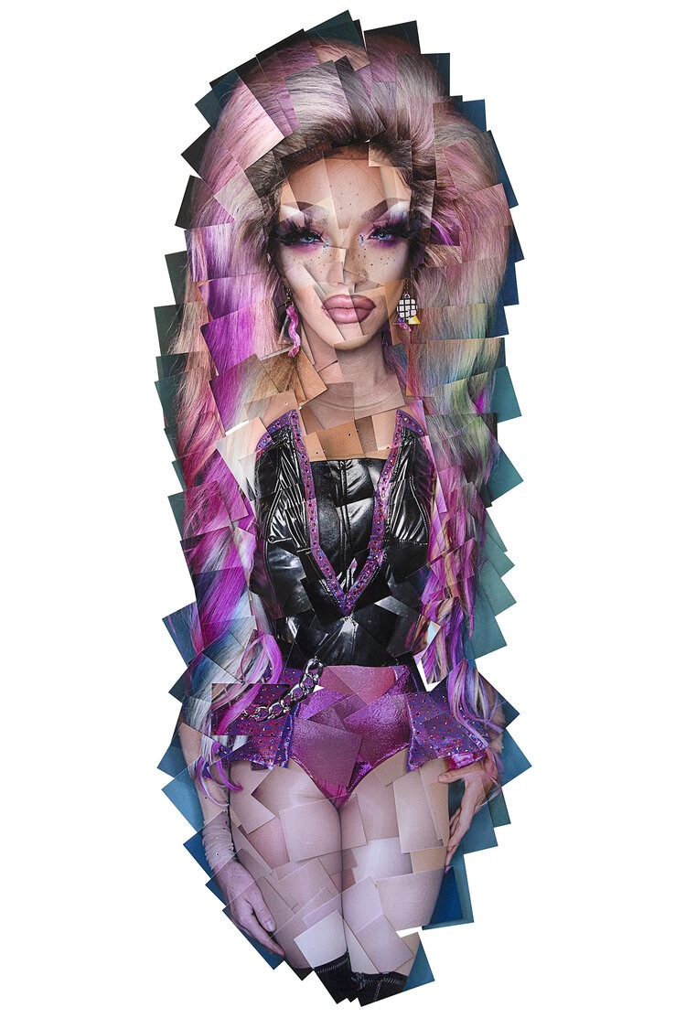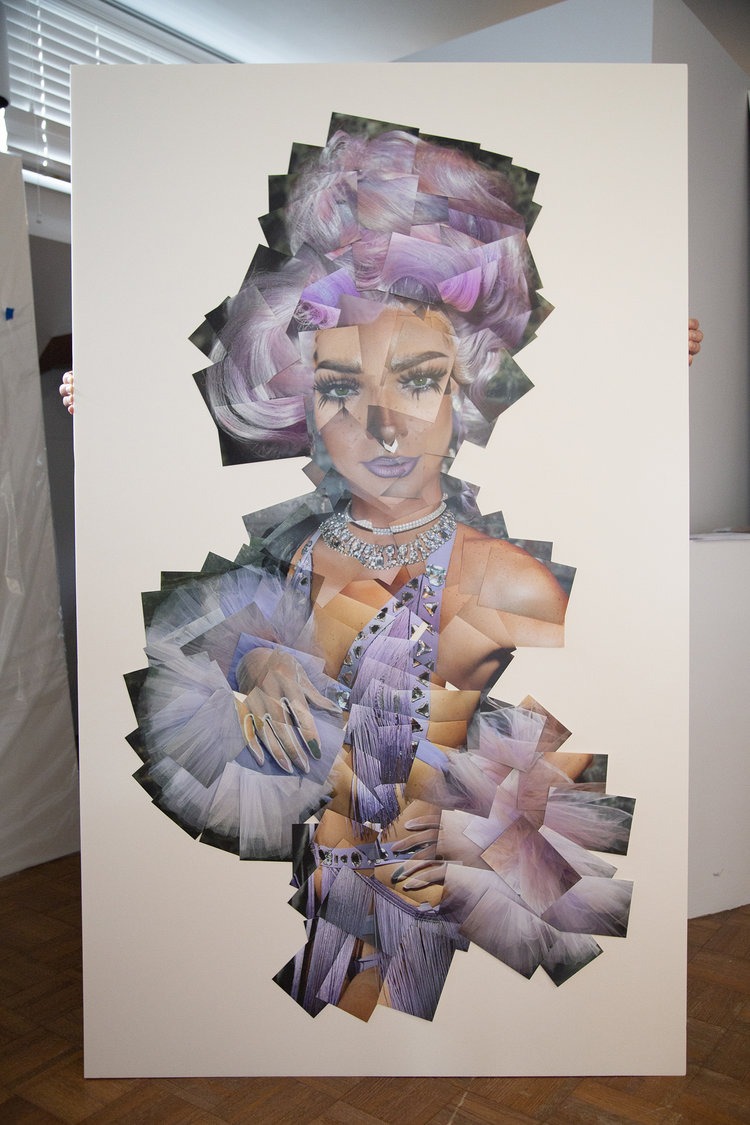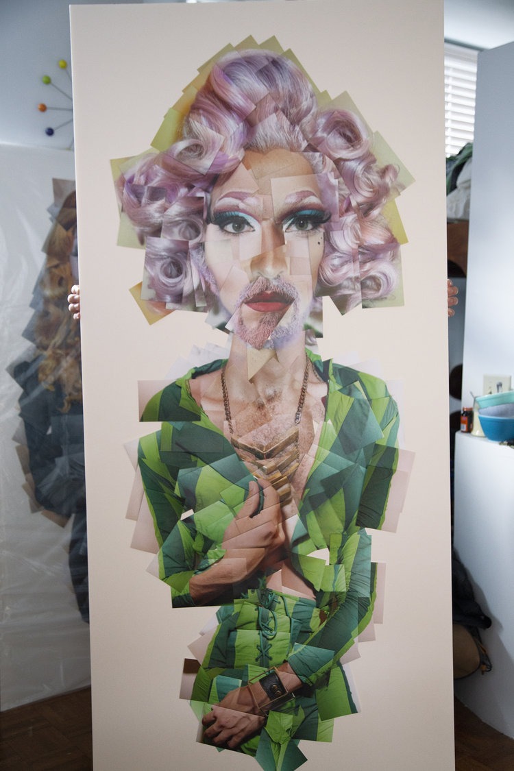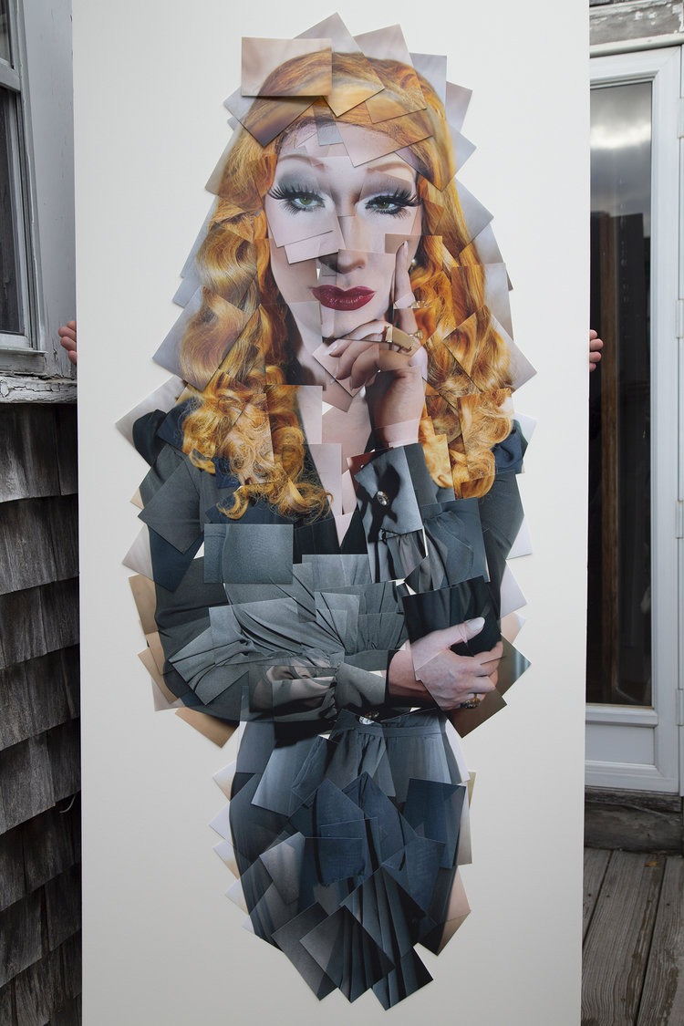 So we returned for the Opening of his latest Show to check out his newest stunning collages. You don’t have to be physically here to admire his work as it is now all online ….. and can even be purchased that way too. Here are a few of our favorites and we’ll leave it to you to see if you can spot your favorite drag star.