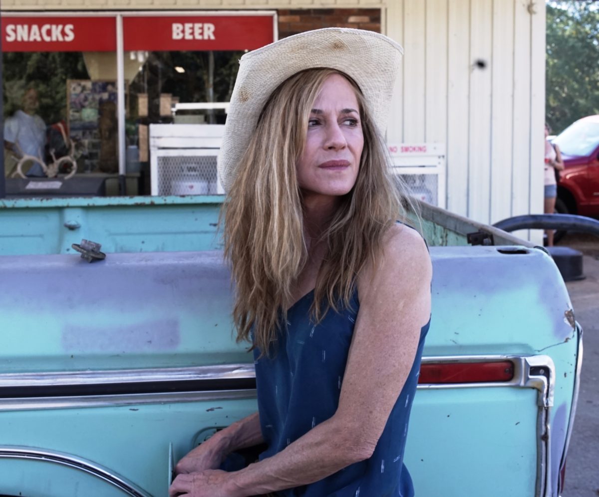 Darcy (Holly Hunter) is a middle-aged Southern woman living a hand-to-mouth existence where money, love and rain all seem to be in short supply. She works as a Administrative Assistance in the local University and has been taking grad school classes at night in hope of bettering her chances. Despite the fact that the town’s local barman (Kim Coates) clearly fancies her, she has kind of given up on romance. Her way around the water shortage is to sneak into her yard in the early hours of the morning and surreptitiously hoses her flowers under the cover of darkness, whilst sharing a cigarette with her best friend and neighbor Bryd (Carrie Coon) one half of an interracial lesbian couple, who is also up to the same thing.