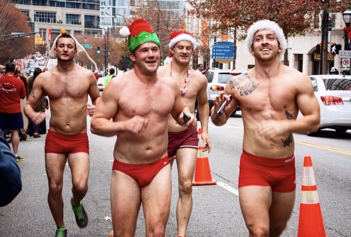 What started with just five guys running around in Boston back in the year 2000 has grown into an annual international event (even though the Bostin event has disappeared). Each December, men and women in cities around the world put on their Santa hats and strip down to their skimpy red underwear to participate in the Santa Speedo Run and raise money for local charities.