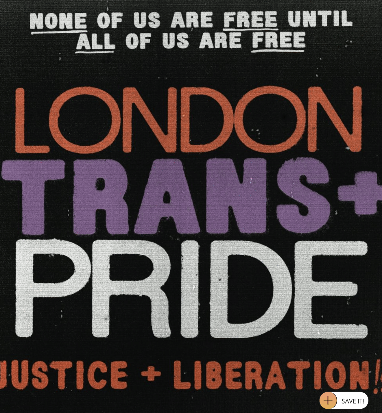 Under the present political climate , now more than. ever it is so important for ALL of us to support our trans brothers and sisters. One way is through LONDON TRANS PRIDE which was established in response to the daily injustices trans+ people face and to create an event where all trans+ people can freely express themselves.