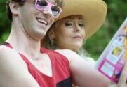 Actor turned writer/director James Andrew Walsh did neither of these and proceeded to film his debut play in his own house turning his potentially funny script into a tough-to-watch dud of a film. Queerguru viewed the World premiere of the movie at Miami OUTshine Virtual LGBTQ Film Festival. Drawn to the film because the cast boasted Tracie Bennett (Tony & Oliver Award Nominated for her definitive performance as Judy Garland) and Ugly Betty’s Michael Urie but even they couldn’t escape this movie unscathed Essentially this was a comedy about a group of friends gathered at a remote seaside home for a long weekend. The friends have come together at the invitation of James, a playwright (Drew Droege), in order to help him hash out a play he’s writing about Roman Emperor Hadrian and his much younger male lover. Jay (played by Urie), a truly dreadful actor wants the part but is way out of his capabilities. Charlotte ( Bennett), a has-been star is more interested in getting inebriated than in James’s play. Then there is Callisto (Kario Marcel), Jay’s hunky boyfriend who is all charm and looks and little else. All the acting is so exaggerated (and hammy) as if they were trying to be heard and noticed at the back of the stalls in a theatre. That soon gets very weary. So too does the rapid-fire one-liner quips. many of which fail to land.