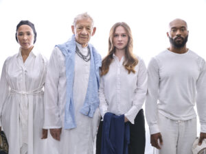 However, when I learned that the brilliant Ian McKellen would star in a small ensemble alongside Golda Rosheuvel (Bridgerton), Arinzé Kene and Rosie Sheehy for the mixed-reality piece An Ark at New York City’s The Shed, I was intrigued. McKellen is a classically trained actor whose roles on stage and screen are legendary and luminous, and I was genuinely curious how his considerable talent, which I have always admired, might translate into a format—nay, a technology—that I’ve often found neat but emotionally unmoving. I’m glad to say I was pleasantly surprised by this play by Simon Stephens (Vanya, The Curious Incident of the Dog in the Night-Time).