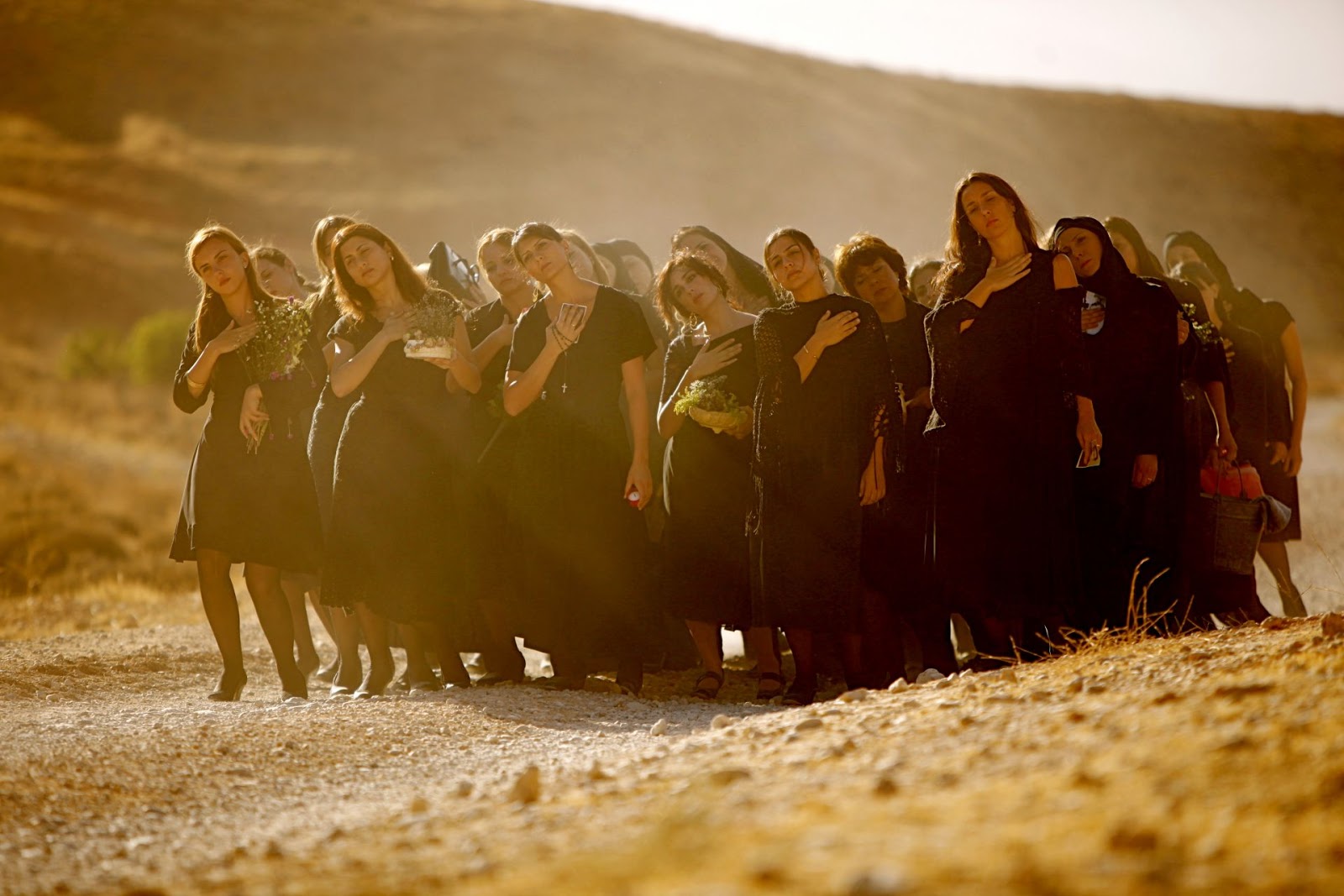 From the opening glorious scene when a tight group of black clad women in a set choreographed march sweep through the dusty countryside until they reach the cemetery together, you are totally engaged. This is where all their young men are buried, and some older ones too, victims of unending and seeming pointless violence. The women now break off into groups, the Christians to their side of the cemetery, and the Muslims to the other side.